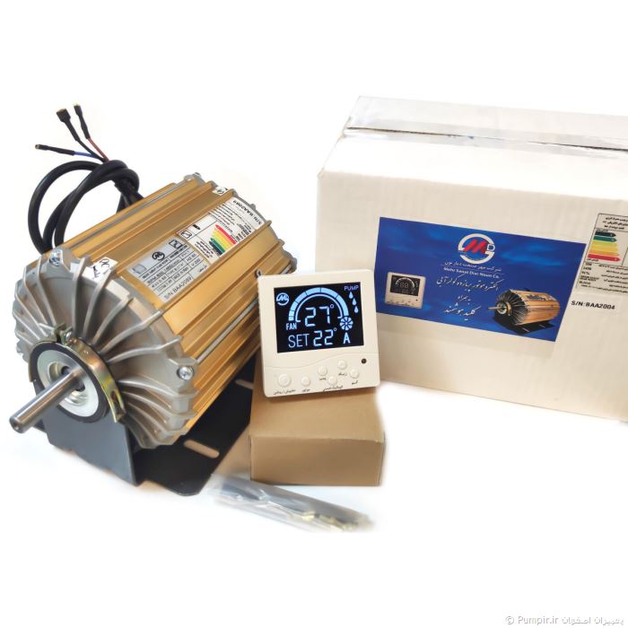 الکترو موتور کولر آبی شرکت مهر صنعت دیار نون مدل BLDC کم مصرف به همراه کلید کنترل هوشمند و ریموت است.
