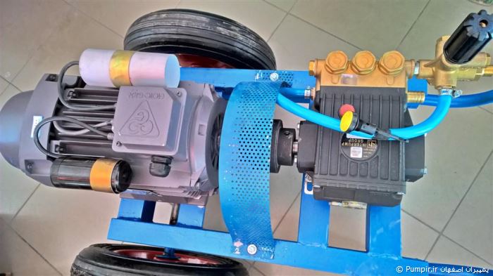 الکتروپمپ کارواش صنعتی 100 بار فشار بصورت شاسی و کوپله شده