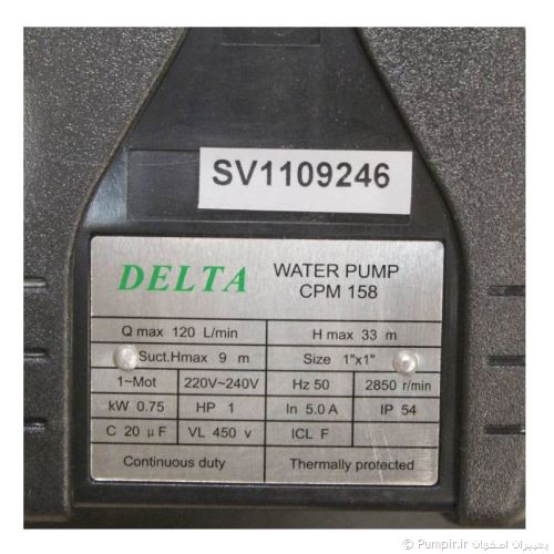 الکتروپمپ دلتا بشقابی 1 اسب بخار پروانه استیل Delta CPM158