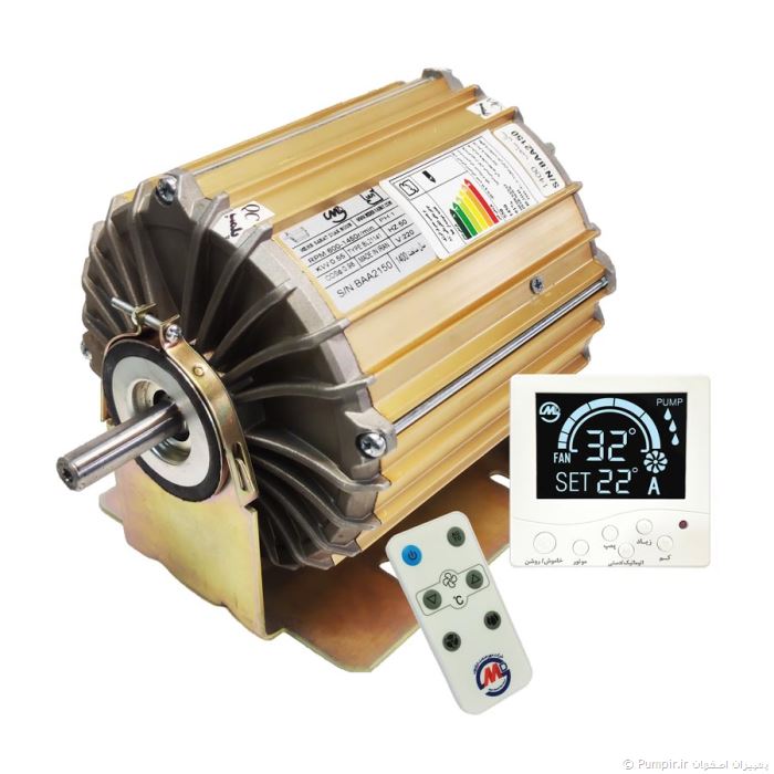 الکترو موتور کولر آبی شرکت مهر صنعت دیار نون مدل BLDC کم مصرف به همراه کلید کنترل هوشمند و ریموت است.